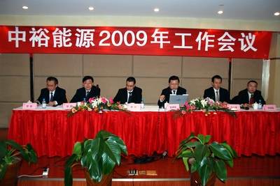 "2月11日至12日,“中裕能源2009年工作會議”于鄭州大河國際飯店順利召開。會議由常務副總裁黎巖先生主持,董事局領導、管理總部經營班子及各部門負責人、各子公司高管及先進單位/個人代表參加了會議。