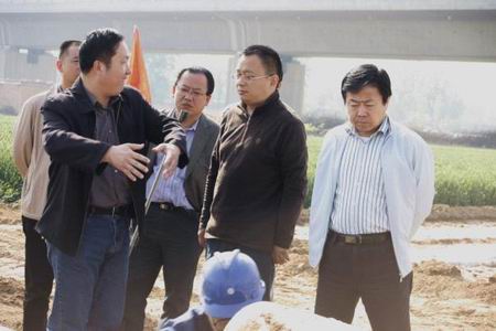 5月1日勞動節當天,賈琨副總裁又在三門峽中??偨浝項钤ブ摇⒏笨偨浝沓N膹?、西二線工程建設指揮部副指揮長單超及施工、監理單位負責人的陪同下,實地考察了工程建設情況,對施工現場頂著30℃高溫緊張作業的全體施工、監理人員進行了親切慰問,于傳達董事局及管理總部各級領導關懷的同時,為大家能以更高的勁頭和更好的狀態投入到之后的建設中送去了及時的鼓勵和指導。