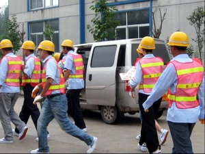 搶險(xiǎn)人員緊急集合趕往事故現(xiàn)場(chǎng)