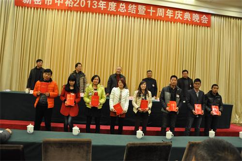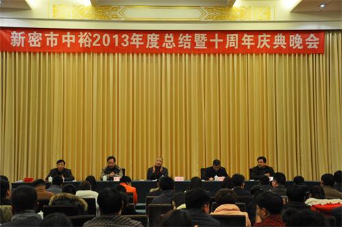 新密公司訊 2013年12月30日晚,“新密中裕2013年工作總結會議暨10周年慶典晚會”在魯班喜悅酒店三樓多功能廳成功舉辦。