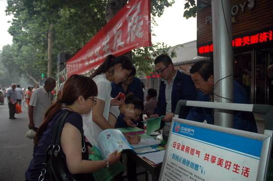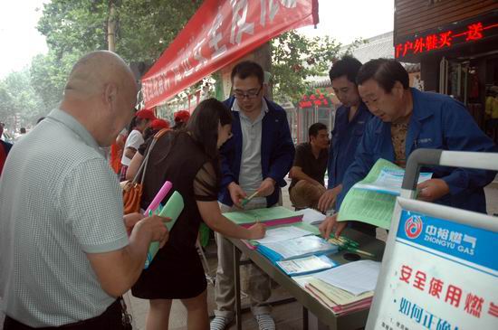由于當天系全市“安全生產月”集中宣傳活動,濟源公司安全宣傳小分隊不到七點鐘就早早來到指定地點,為設置咨詢臺、宣傳版面、懸掛橫幅“搶占”有利位置。在本次宣傳活動中,濟源公司還印制并向市民發放了《河南省城鎮燃氣管理條例》等新版宣傳資料。