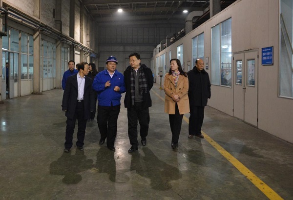魯總一行在參觀洛陽龍海電子玻璃有限公司生產車間