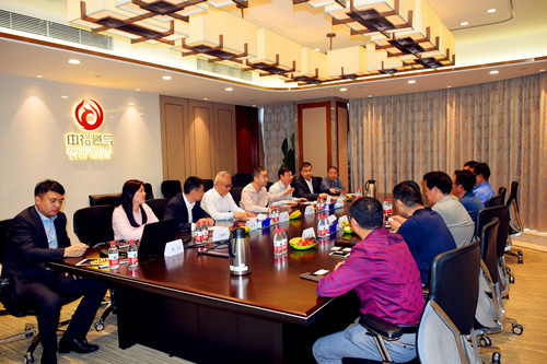 管理總部訊 4月20日下午,三門峽產業聚集區管委會主任朱強先生一行6人至管理總部考察,董事會王文亮主席、黎巖常務副總裁、賈琨副總裁、彭軍副總裁等集團領導參與接待。
