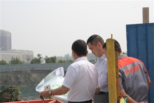 王文亮主席首先到達三門峽公司綜合辦公樓規劃土地進行實地勘察,并查看了設計圖紙,詳細詢問了綜合辦公樓前期土地規劃工作情況,對三門峽公司在土地置換方面所做的工作表示滿意。
